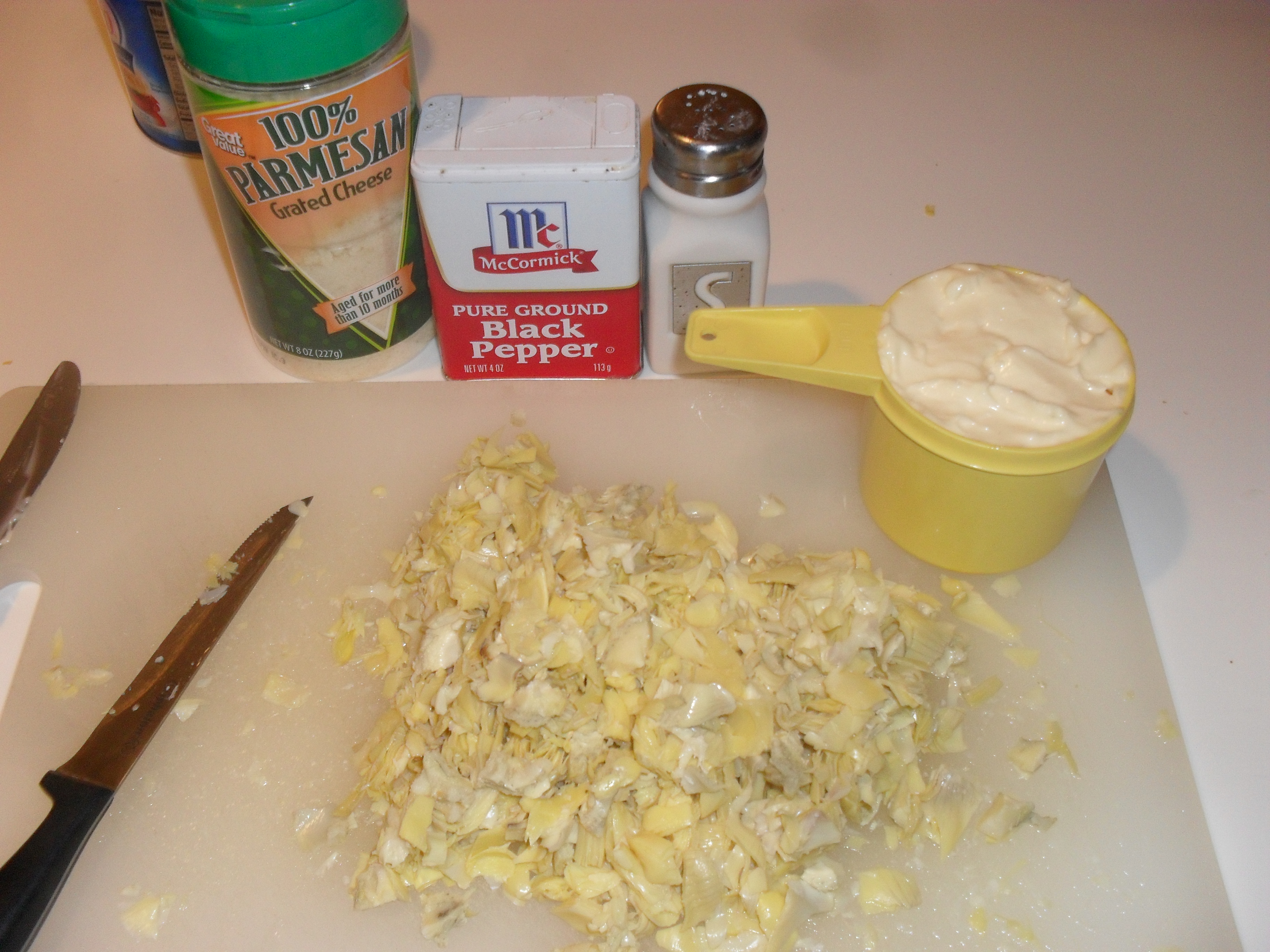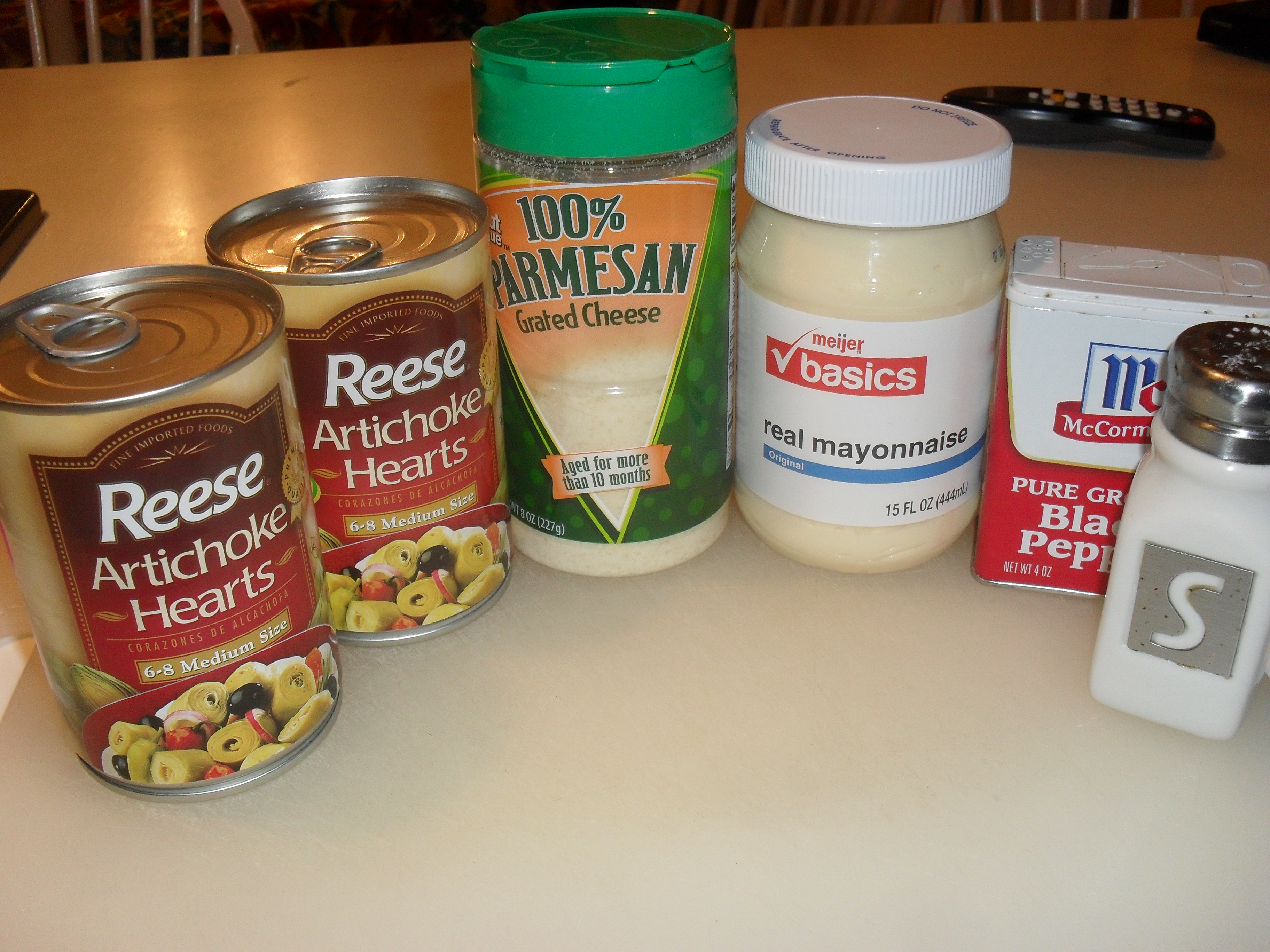 Easy ingredients: Parmesan cheese, mayonnaise, 2 cans of artichokes, salt and pepper to taste