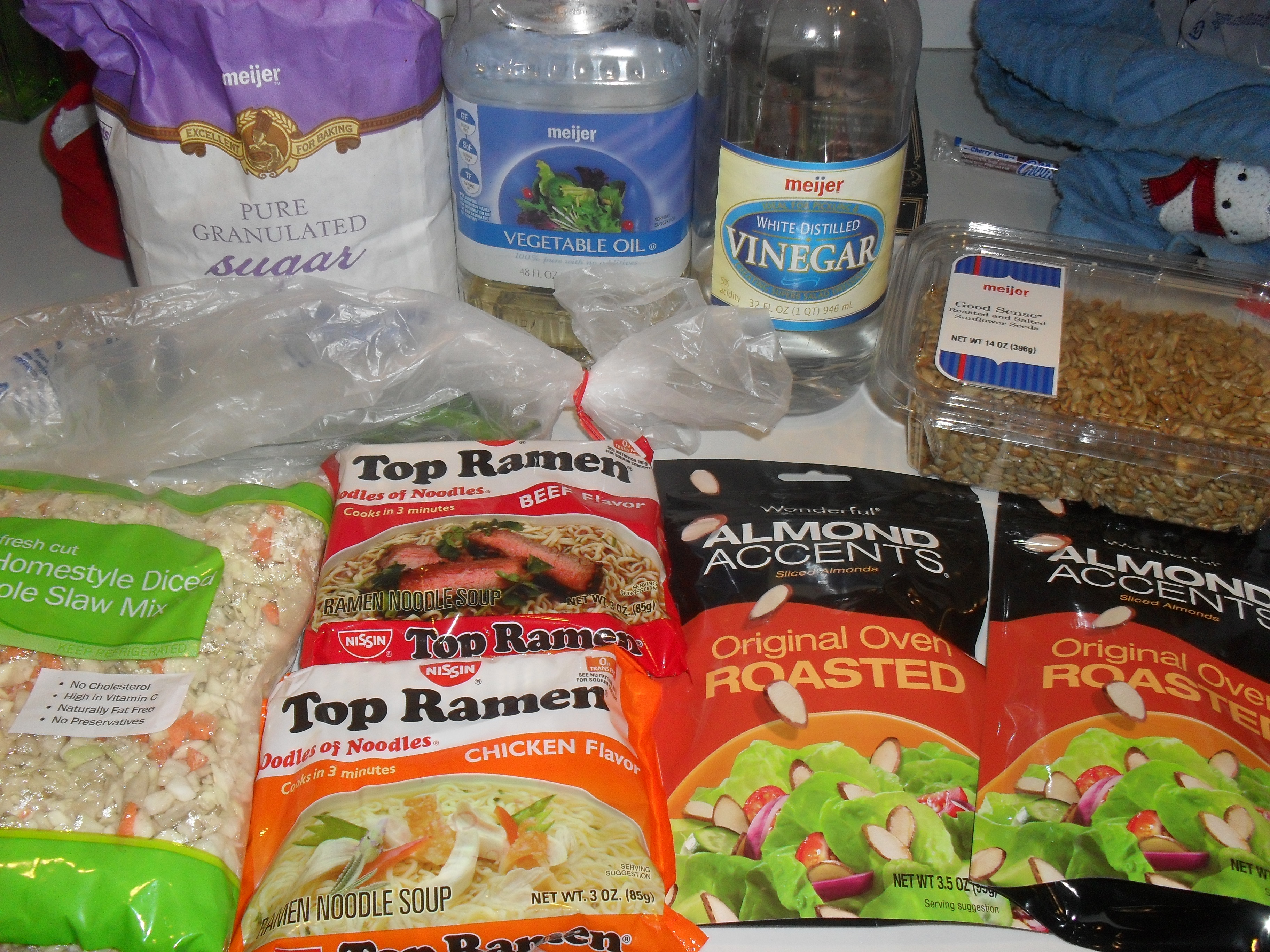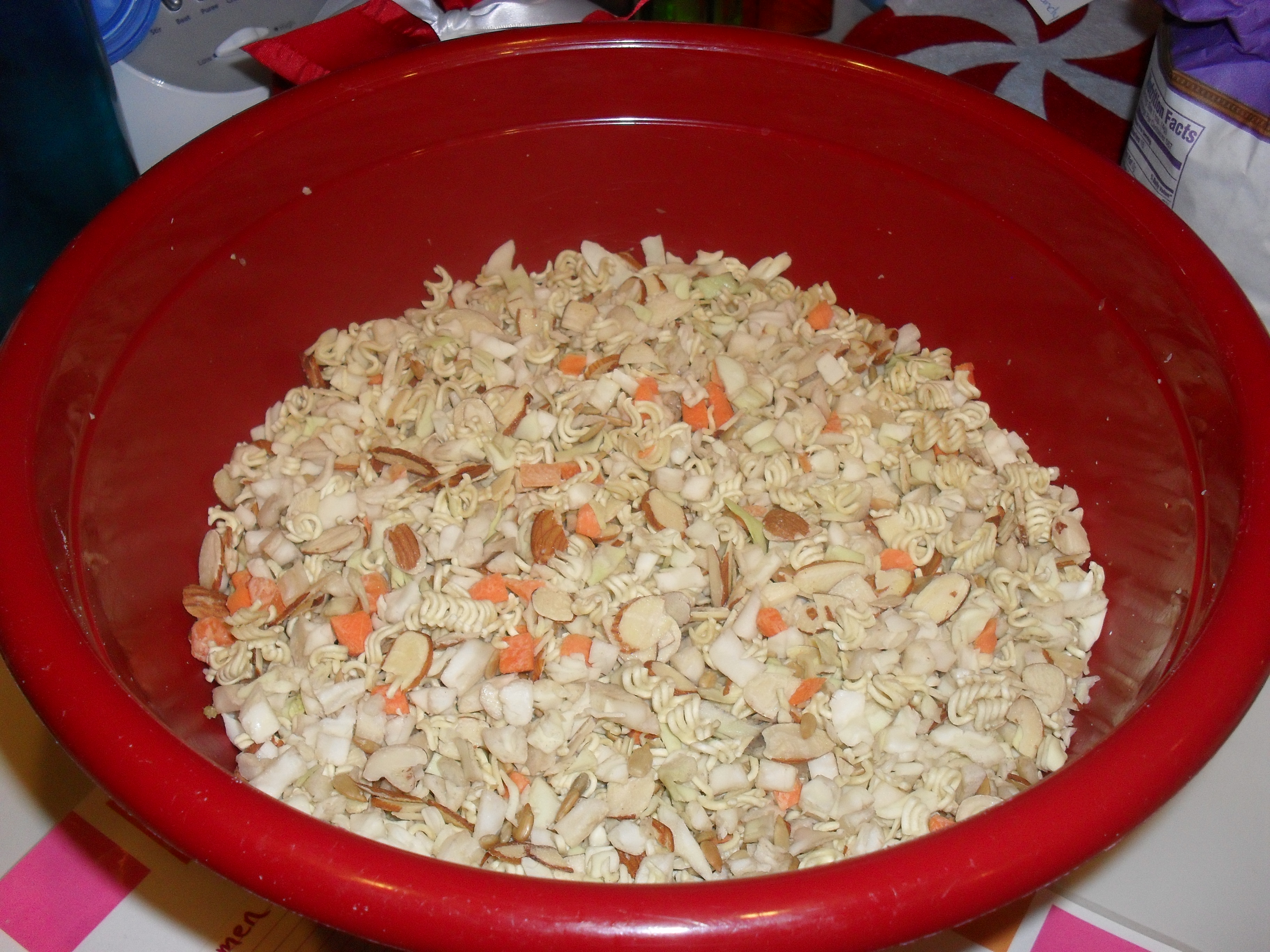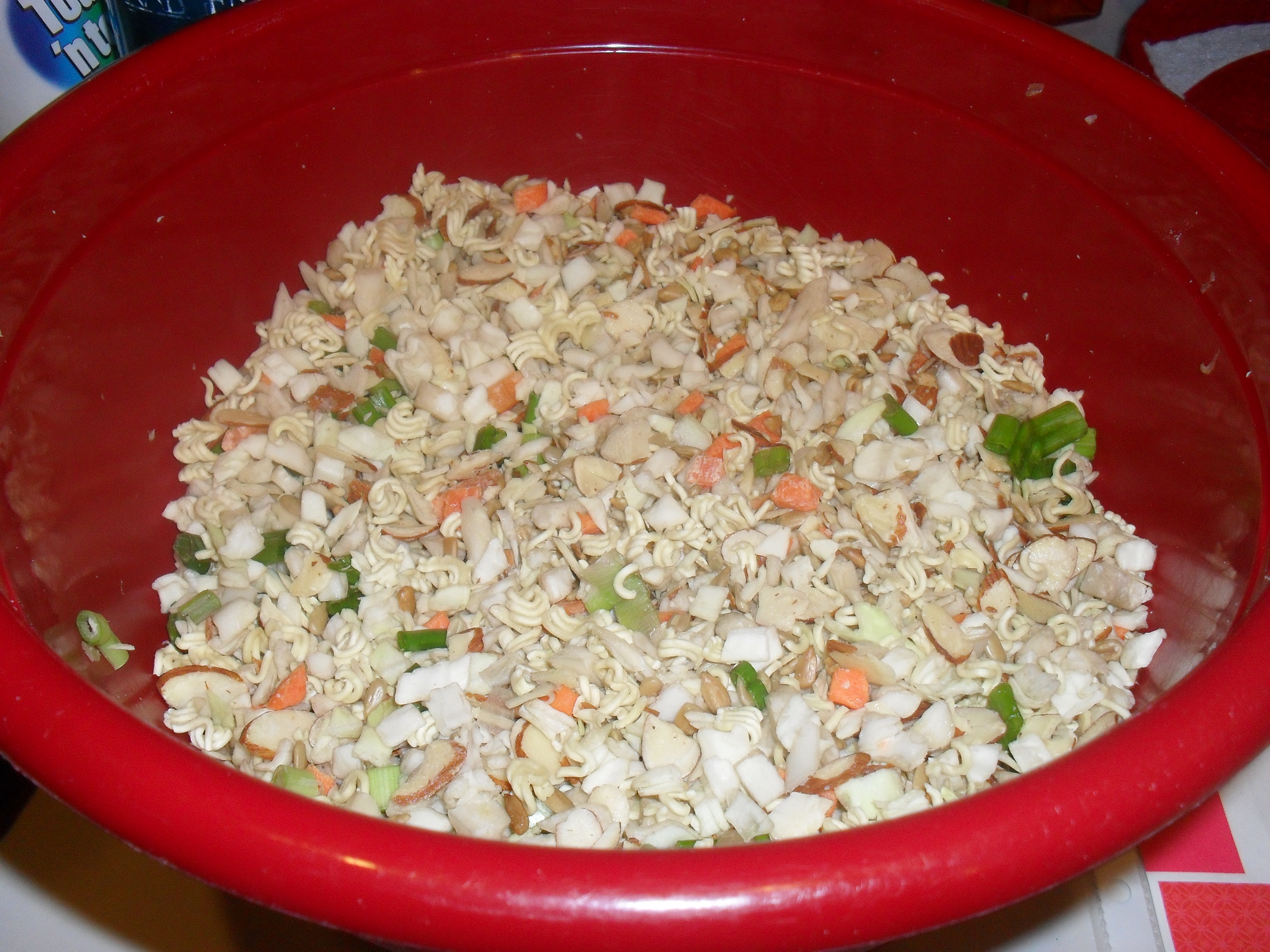 This recipe has been in my family ever since I was born. My Mom has passed this recipe down to me and I will guard it with my life. This is a family favorite and tradition. The Ramen Noodle Salad is a legend. I made this for my work potluck party and it was a hit. It is rare if you leave having leftovers. I used to make this just to eat as a snack its so delicious. It has the perfect amount of crunch, sweetness and flavor. This recipe takes about 15 minutes to prepare, which is always a bonus! Cheap, delicious, convenient and easy! The best combination all rolled into one. This addictive dish will leave you and your guests pleading for more!