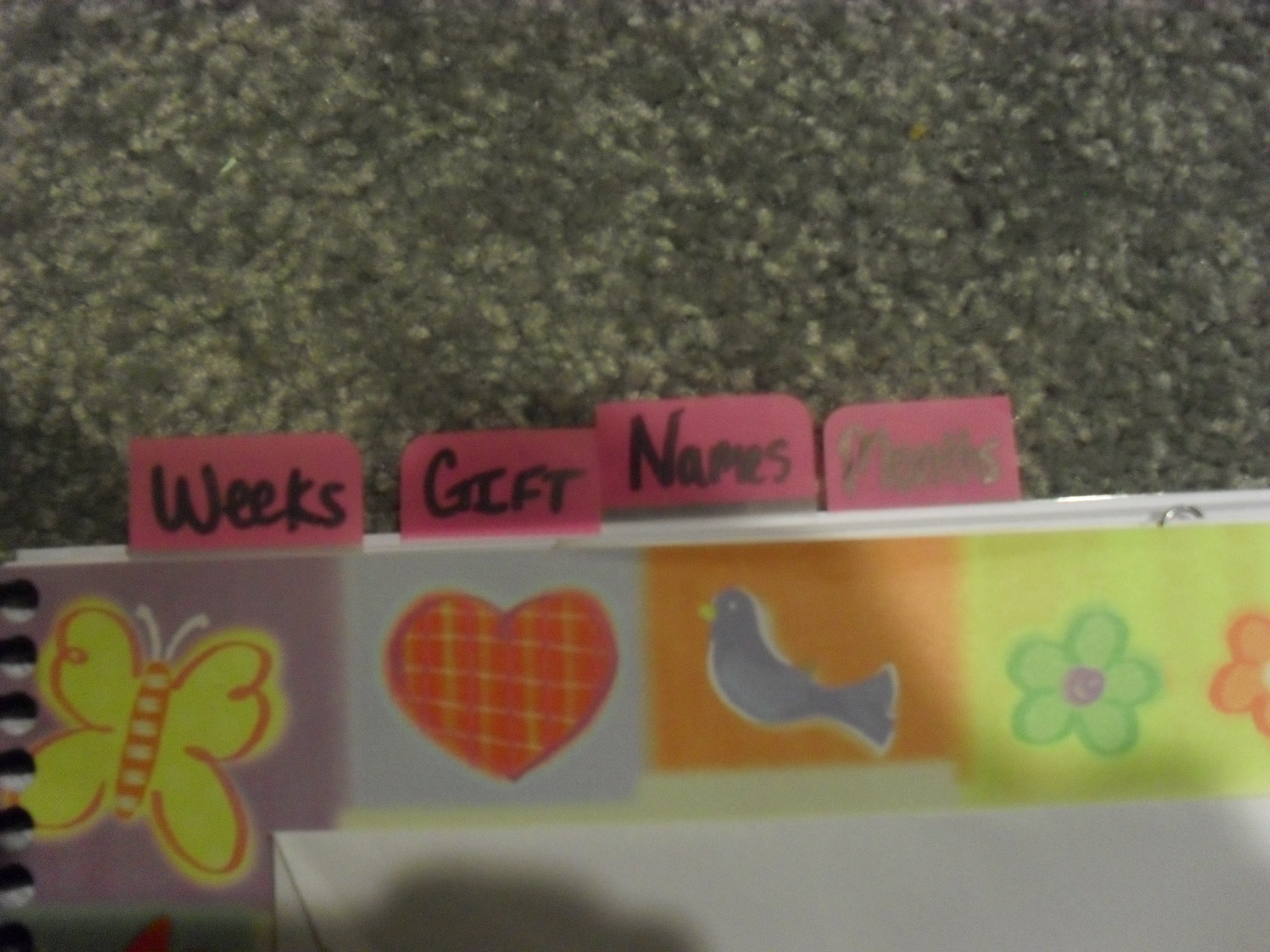 I bought these tab stickers while I was at Staples. They were only $2. I have each section separated and I love these stickers because they peel right off if you need to switch them