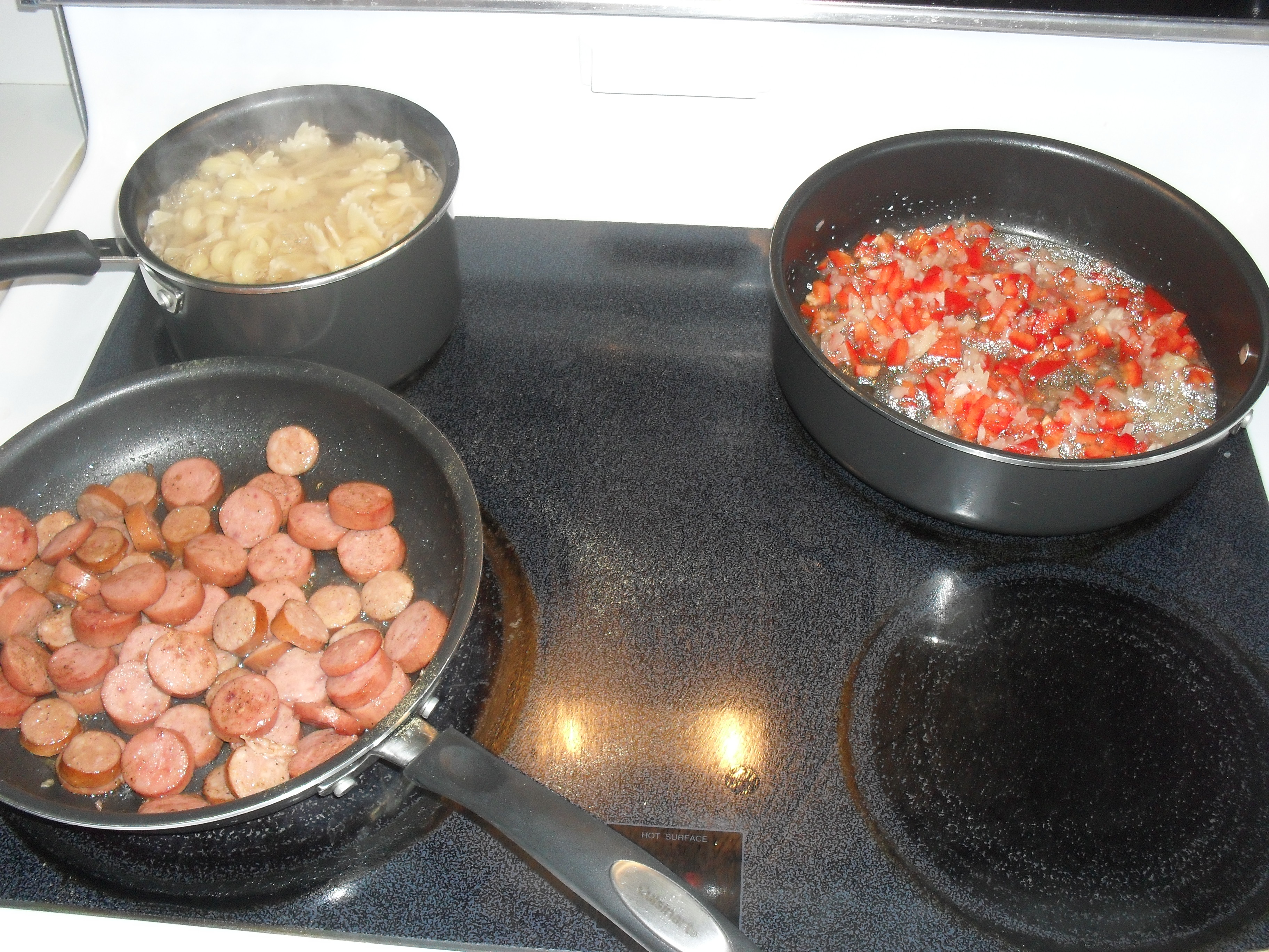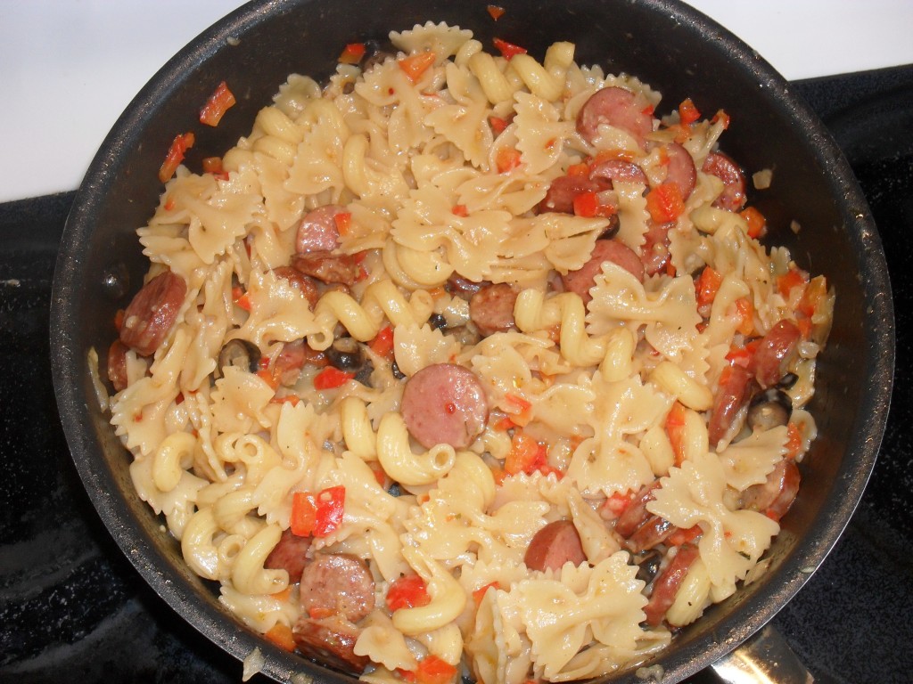 - Combine the pasta into the vegetable and sausage mixture. Mix well until combined.