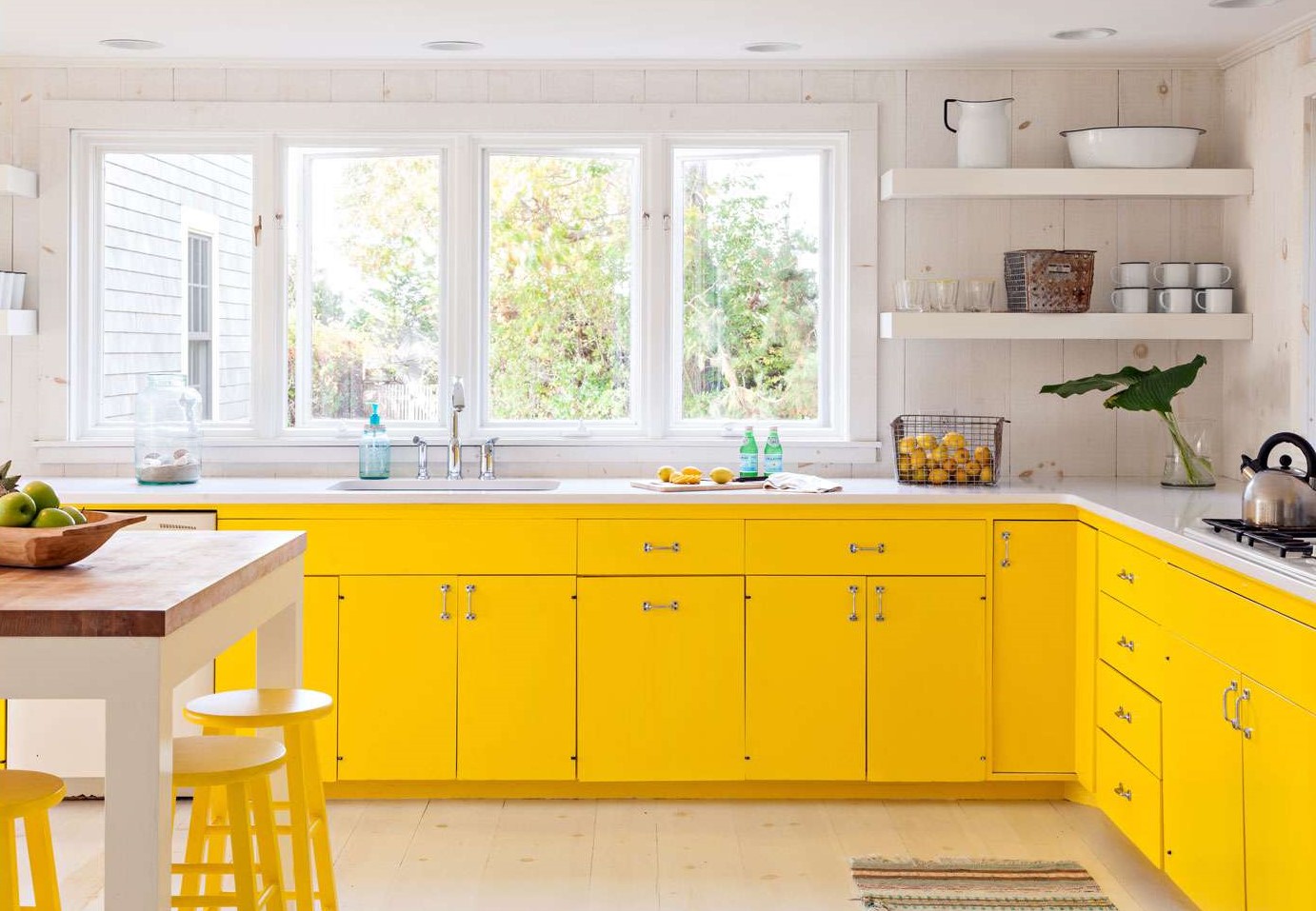 Next, decide what items you’re going to store in each cabinet. For example, the cabinet closest to the coffee maker should hold mugs, and the one closest to the prep area should hold knives or cutting boards.