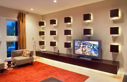 Accent lighting often involves the usage of wall sconces, floodlights, recessed lighting or torchiere lamps.